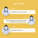 1. Scrub: Apply the Scrub to damp skin, massaging gently in circular motions. Rinse thoroughly with warm water to reveal smoother, softer skin.