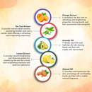 Manicure Pedicure : Orange Extract, Tea Tree Extract, Avocado Oil, Lemon Extract, Almond Oil