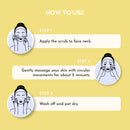 1. Scrub: Gently massage the Scrub onto damp skin in circular motions, focusing on areas of congestion and dullness. Rinse thoroughly with warm water.