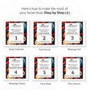 STEP-2)-Take a coin-sized amount of scrub and message it on your face & neck in circular upwards motions for 3 to 5 minutes then gently remove with moist cotton swab .Pet dry before moving on to the next step.