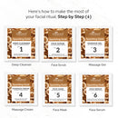 STEP-2)-Take a coin-sized amount of scrub and message it on your face & neck in circular upwards motions for 3 to 5 minutes then gently remove with moist cotton swab .Pet dry before moving on to the next step.